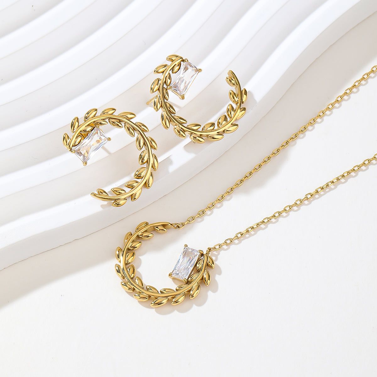 Simple Natural Green Stone Jewelry Set for Women,Hoop Earrings,Necklace,18K Gold-plated Spiritual Gift,Fortunate Stone Jewelry
