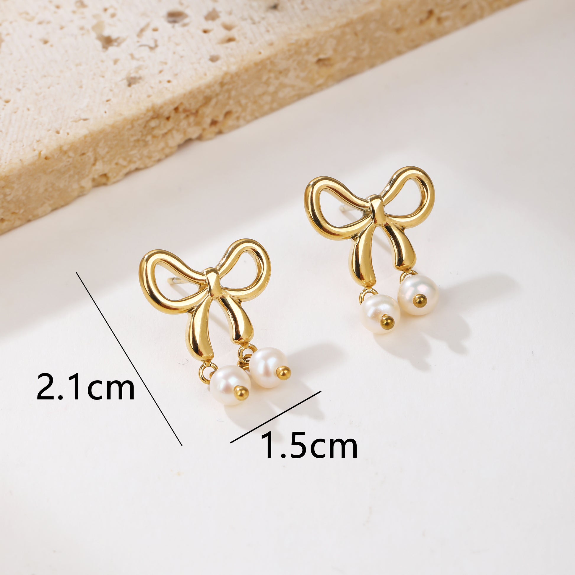 These elegant Pearly Bow Drop Earrings are a stylish addition to any look. Featuring a delicate bow design with lustrous pearls, they add a touch of sophistication and charm. Perfect for both everyday wear and special occasions, these earrings are a must-have accessory.